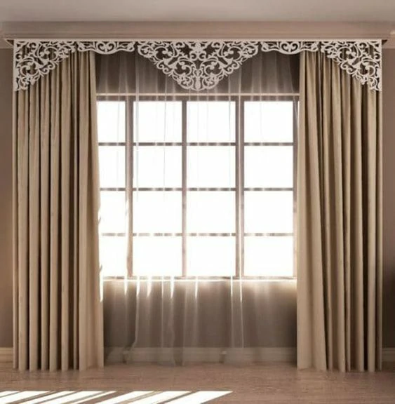 البلتكانه المتناسقة مع شكل الستارة تعطي مظهرًا مرتبًا واحترافيًا، مما يعزز جمال الغرفة ويلائم الديكور العام.