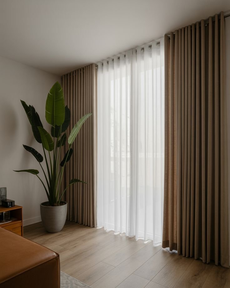 تستخدم الستائر الخفيفة في الأماكن التي تحتاج إلى إضاءة طبيعية أكبر، وتساعد على تلطيف الضوء دون حجبه بالكامل، مما يضفي إحساسًا بالانتعاش.