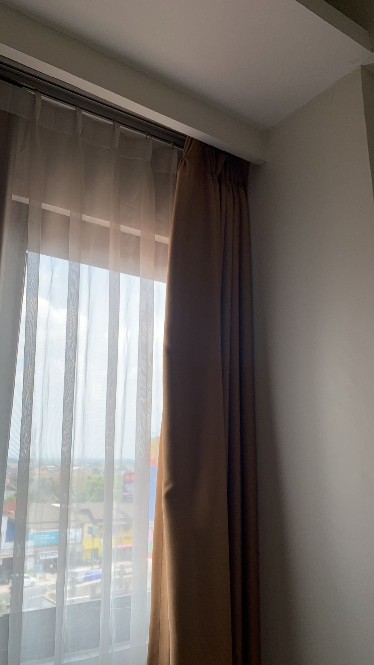 إضافة طبقتين من الستائر يمنح النافذة مظهرًا متوازنًا وأنيقًا، ويكمل ديكور الغرفة بلمسة عصرية.