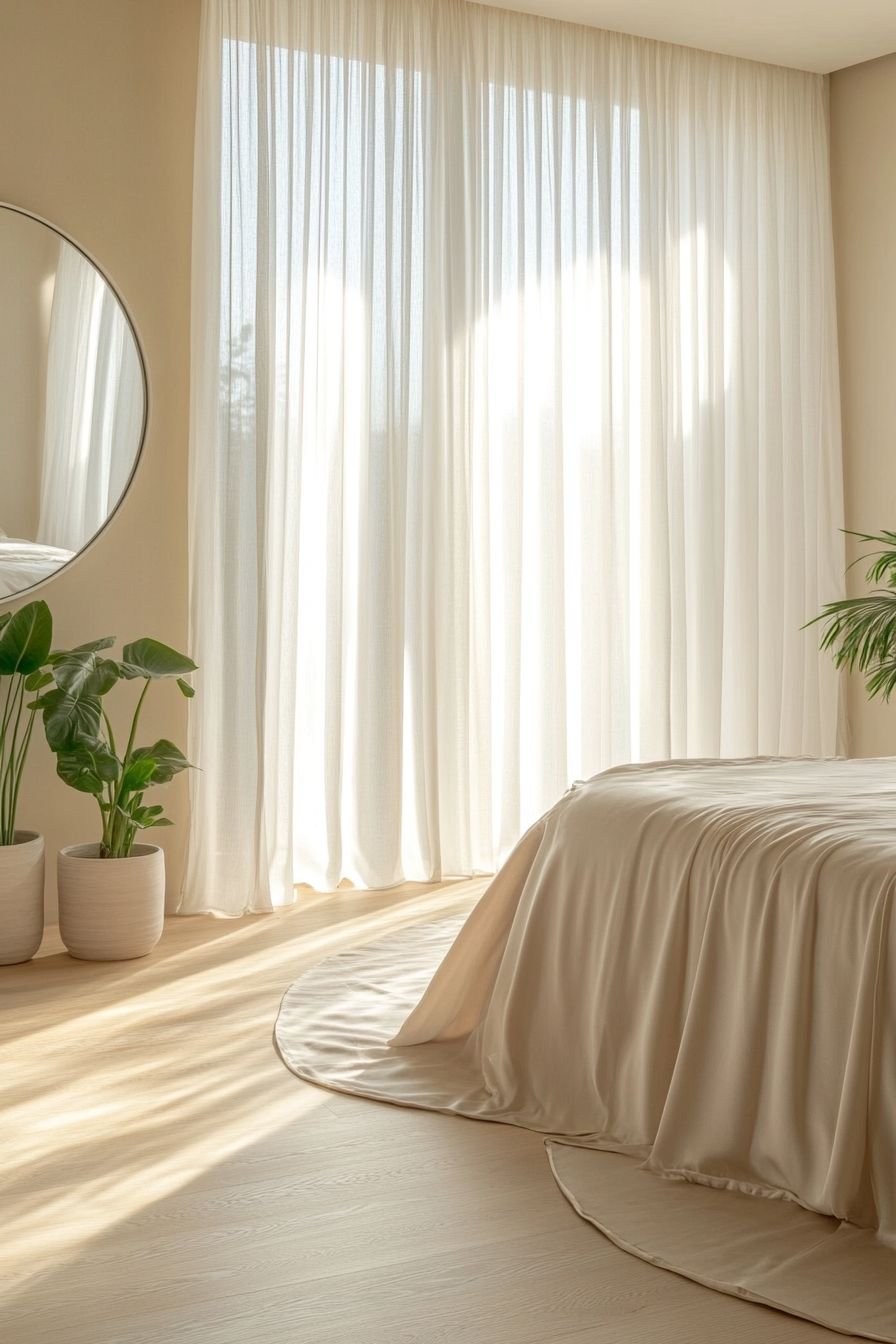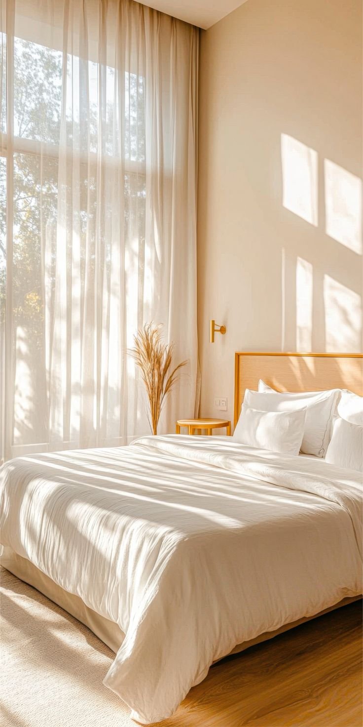 توفر الستائر مستوى عاليًا من الخصوصية، مما يجعل غرفة النوم مساحة خاصة تمنح الراحة بعيدًا عن أعين الآخرين.